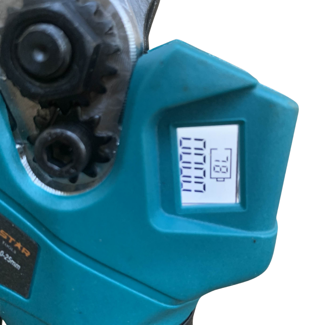Най-силното предимство на този модел е вграденият LCD дисплей, който в реално време показва оставащия заряд на батерията и броя извършени срезове. Това ви дава пълен контрол върху инструмента и ви позволява да планирате работата си с максимална ефективност.