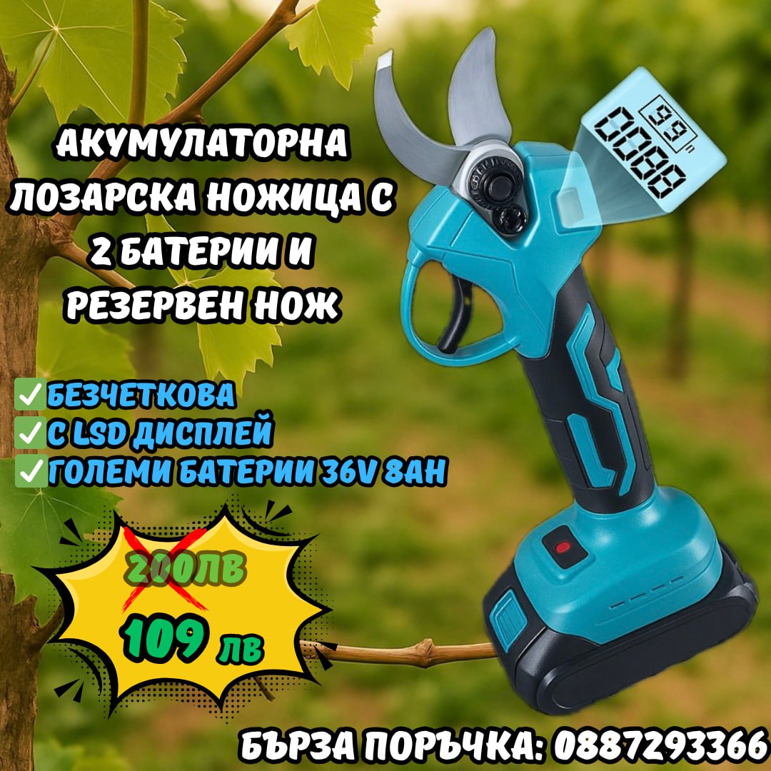 Професионална Акумулаторна Лозарска Ножица ChromeStar 36V 8Ah – Мощност, Прецизност и Умна Технология в Един Инструмент